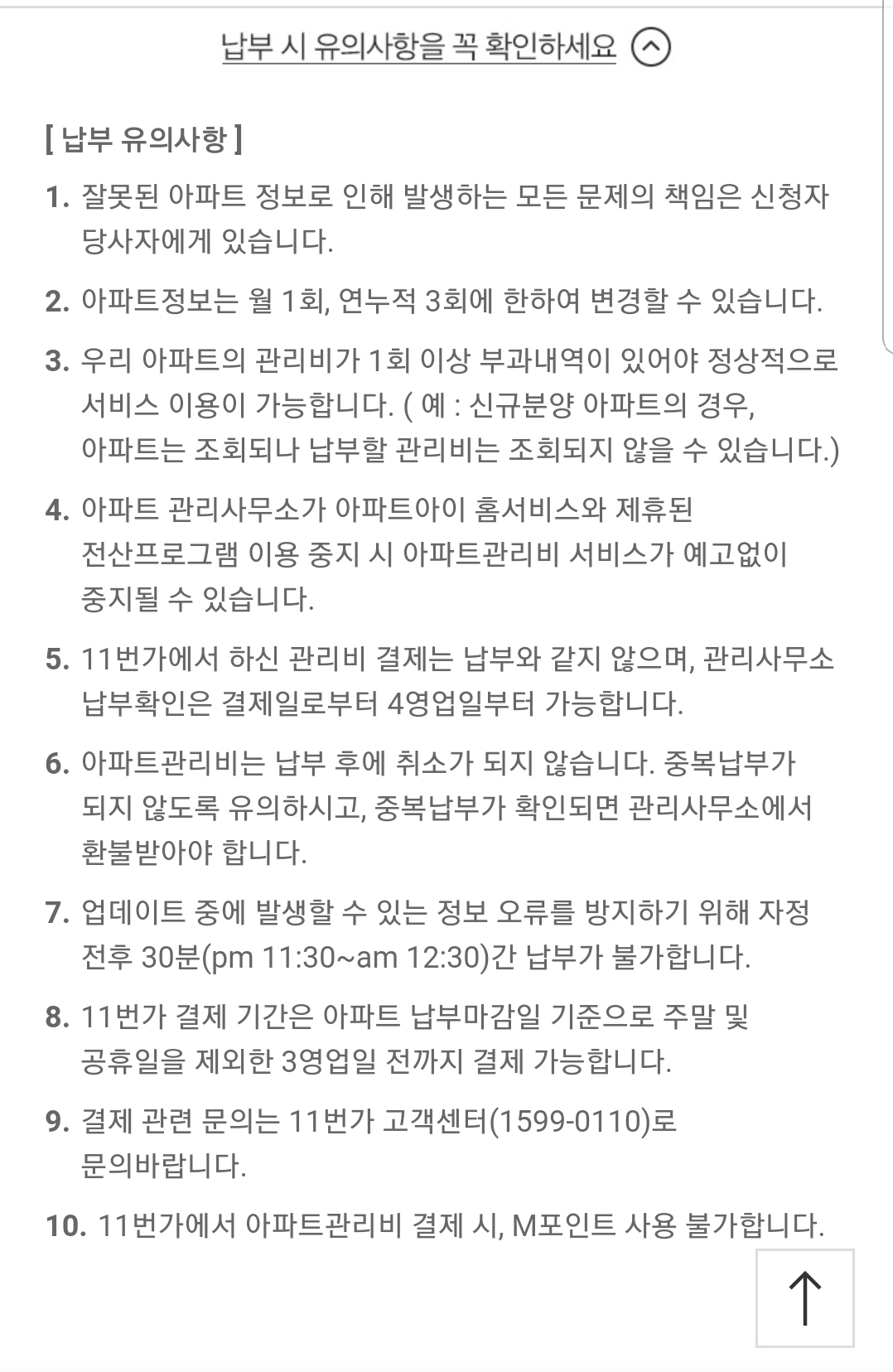 7.중복 납부시 취소되지 않으며 환불은 관리사무소를 통해 받아야합니다.