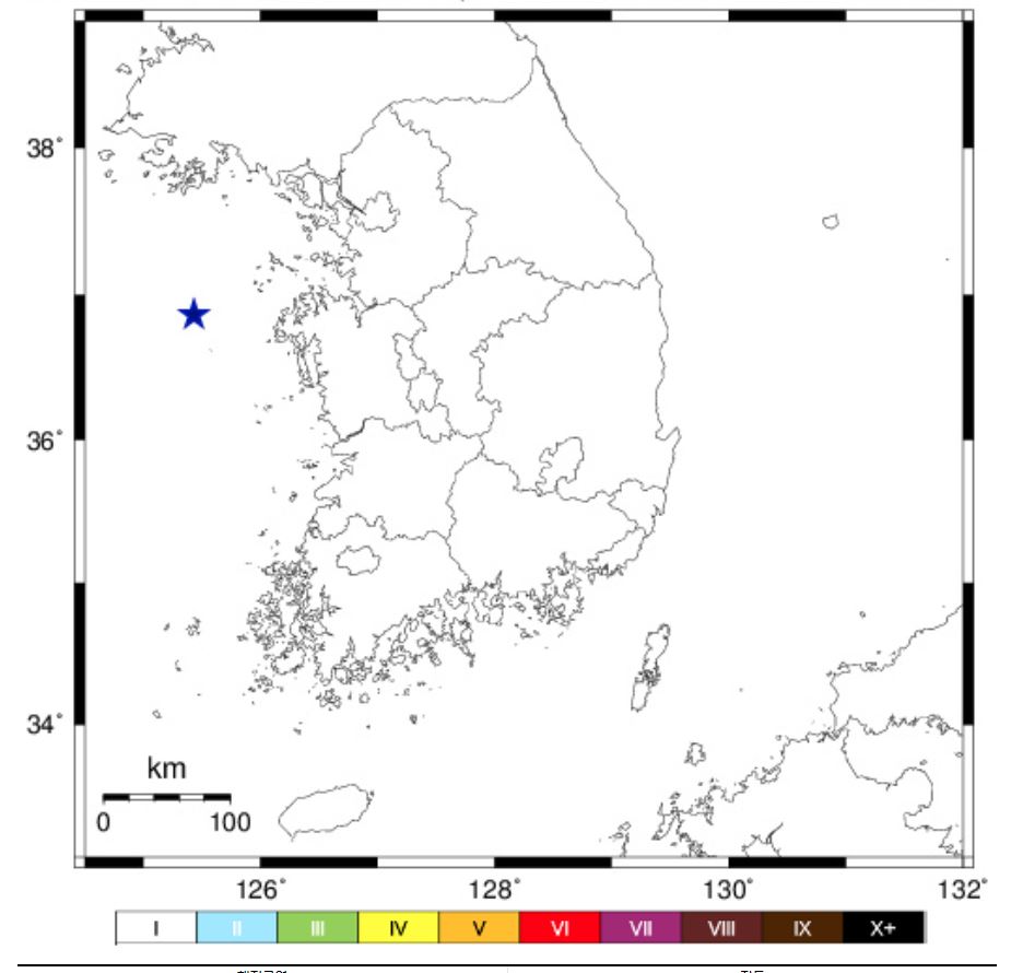 발생위치 : 중국 청도 동쪽 332km해역 (위도: 35.79 N, 경도: 123.97 E) ,발생깊이 :12km