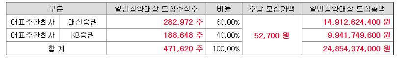 주관사 : 대신증권(60% 수수료 2000원), KB증권(40% 수수료 1500원)