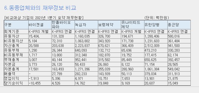 기술 특례 기업 상장으로 지금 매출액이 없다는 것이 특이점인데요. 매출이나 자산규모는 다른 기업들과 비교해 보았을때는 작은 규모로 보여집니다. 앞으로 나올 신약이 성공하느냐에 따라 매출도 나오고 이익이 생기는 시점일 것으로 보여집니다.