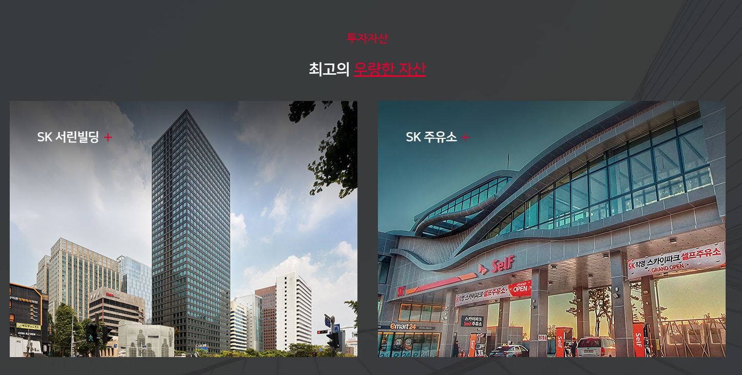 에스케이 그룹이 보유한 부동산 자산에 대한 우선매수 협상권을 보유하고 있습니다. 우선 협상권 대상 자산들이 모두 편입될시 데이터 센터, 신에너지, 물류센터, 해외 자산 등 최 대 10조원 이상의 규모로 성장할 가능성을 가지고 있습니다.