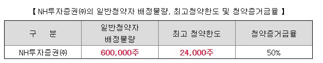 청약한도 : 24,000주 (우대율에 따라 상이함, 36,000주~60,000주까지 가능)
