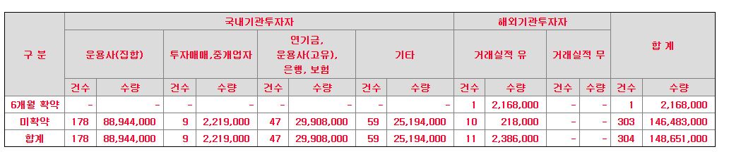 의무보유확약 또한 아주 적습니다. 1%대로 1건입니다. 이정도면 수요예측 참패 실적입니다.