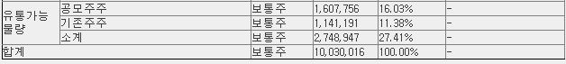 | 당일유통물량 | 27.41% (기존 주주 11.38%, 공모주 16.03%) |