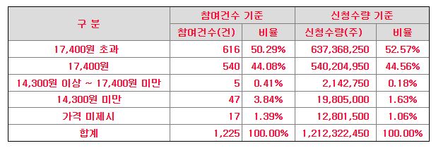 | 기관경쟁률 | 밴드 상단부분 | 의무보유확약률 |