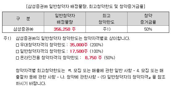 삼성증권의 청약자격은 일반과 우대, 온라인 전용 청약자격으로 나눠집니다.