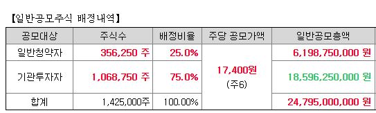 기관의 배정률은 75%, 일반청약자는 25%의 비율입니다. 우리 사주 물량은 따로 없는 듯하네요.