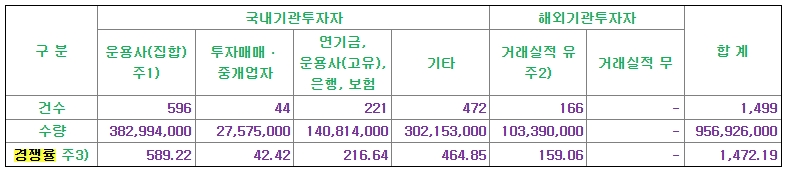 우리사주 조합을 제외한 공모 청약 수량은 810,000주이며 이 중 기관 투자자는 65%, 일반투자자는 25%의 부분을 모집하게 됩니다. 이는 본 청약 결과 후 달라질 수 있습니다.