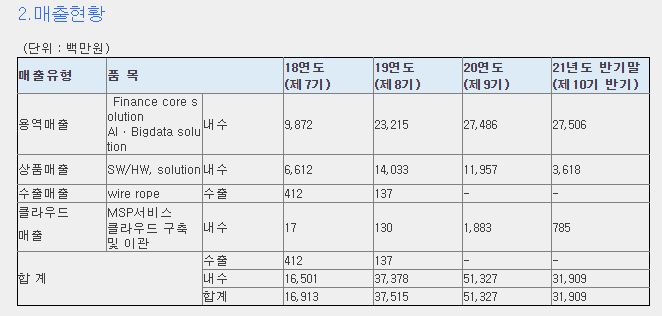현재 파이넨셜 솔루션에서의 매출이 계속해서 증가하고 있으며, 클라우드 관련 매출도 20년도부터 성장하고 있는 추세입니다.