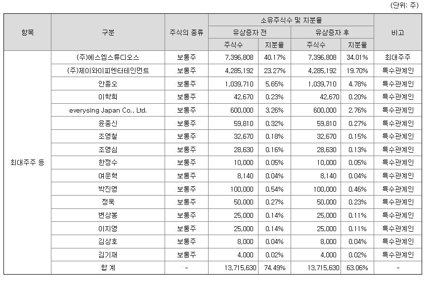 최대주주는 sm스튜디오스, 그 다음은 jpy엔터테이먼트 입니다. 디어유가 상장하면서 최근 상승세를 타고 있는 엔터주에도 긍정적인 영향이 있을 것으로 기대됩니다.