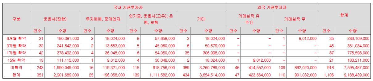 | NH투자증권 | 1,802,400주 | 720,000주 | 없음 |