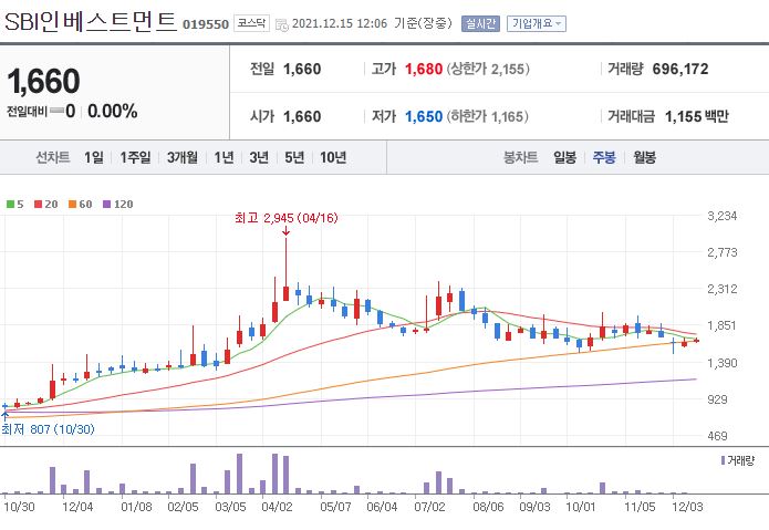 SBI인베스트먼트 역시 한화자산운용과 함께 지분 투자를 했습니다. SBI 역시 창투사로 두나무에도 투자를 하였기에 비트코인 상승과 함께 그래프가 치솟았다 내려왔습니다.