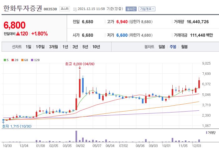 한화투자증권은 두나무에 투자해서 두나무 관련주로도 분류되는데요. 야놀자 관련주에서도 반응이 가장 빨리 오는 대장주입니다. 야놀자에 투자한 창투사로 관련주로 구분됩니다. 한화투자증권은 두나무 연관주라서 비트코인 하락과 상승 관련해서도 같이 움직이는 편입니다.