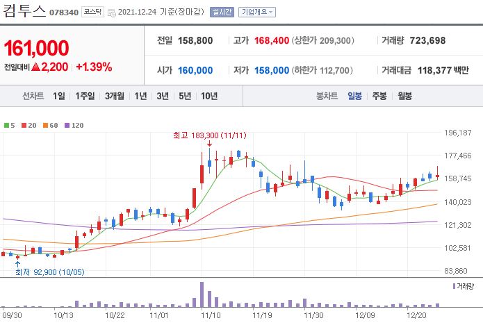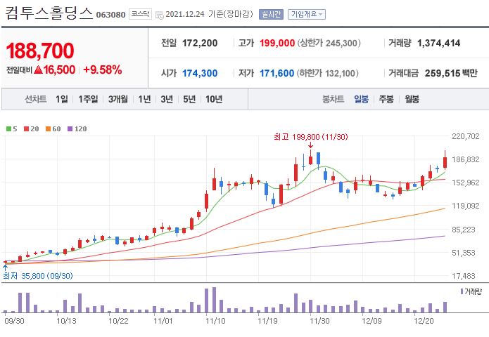 컴투스 홀딩스 (9.58%), 컴투스 (1.39%)상승으로 12월 24일 장이 마감되었습니다.