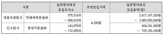 주관사 : 미래에셋증권, 현대차 증권