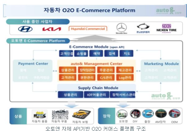 B2C형태와 B2B형태로 공급되고 있으며 현대/기아 멤버스 몰, KIA 제뉴인 몰, 오토 앤 B2B몰, 블루핸즈 몰, 오토큐 몰, 르노삼성 MRO 몰 등으로 운영하고 있습니다.