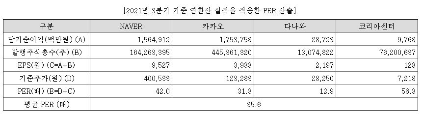 공모가 산정방식에서 PER 비교그룹은 네이버, 카카오, 다나와, 코리아센터로 선정되었는데요. 모집단 그룹은 포털, 전자 상거래업에 포함되어 있어 의문이 생기는 부분이 있습니다.