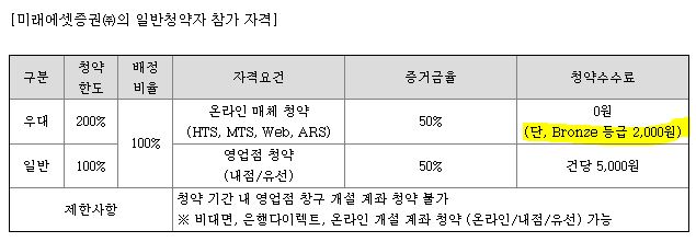 미래에셋증권 청약자격 : 청약 기간 내 영업점 창구 불가, 비대면 , 온라인, 은행다이렉트 계좌 개설 가능
