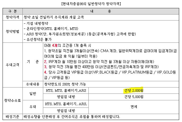 현대차 증권의 청약자격은 청약 초일 전일까지 주식계좌 개설 고객에 해당합니다. 당일 개설 불가