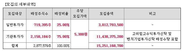 전체 모집 주식 수에서 일반투자자에게 배정되는 비율은 25%로 확정되었습니다. 기관투자자가 상당히 많은 물량을 가져가게 되는데요. 대부분 일반 투자자는 25%의 확률을 가지게 됩니다. 여기에 의무보유 확약이 높아지면 기관의 물량 중에 상당 수가 상장 당일 나오지 않게 됩니다.
