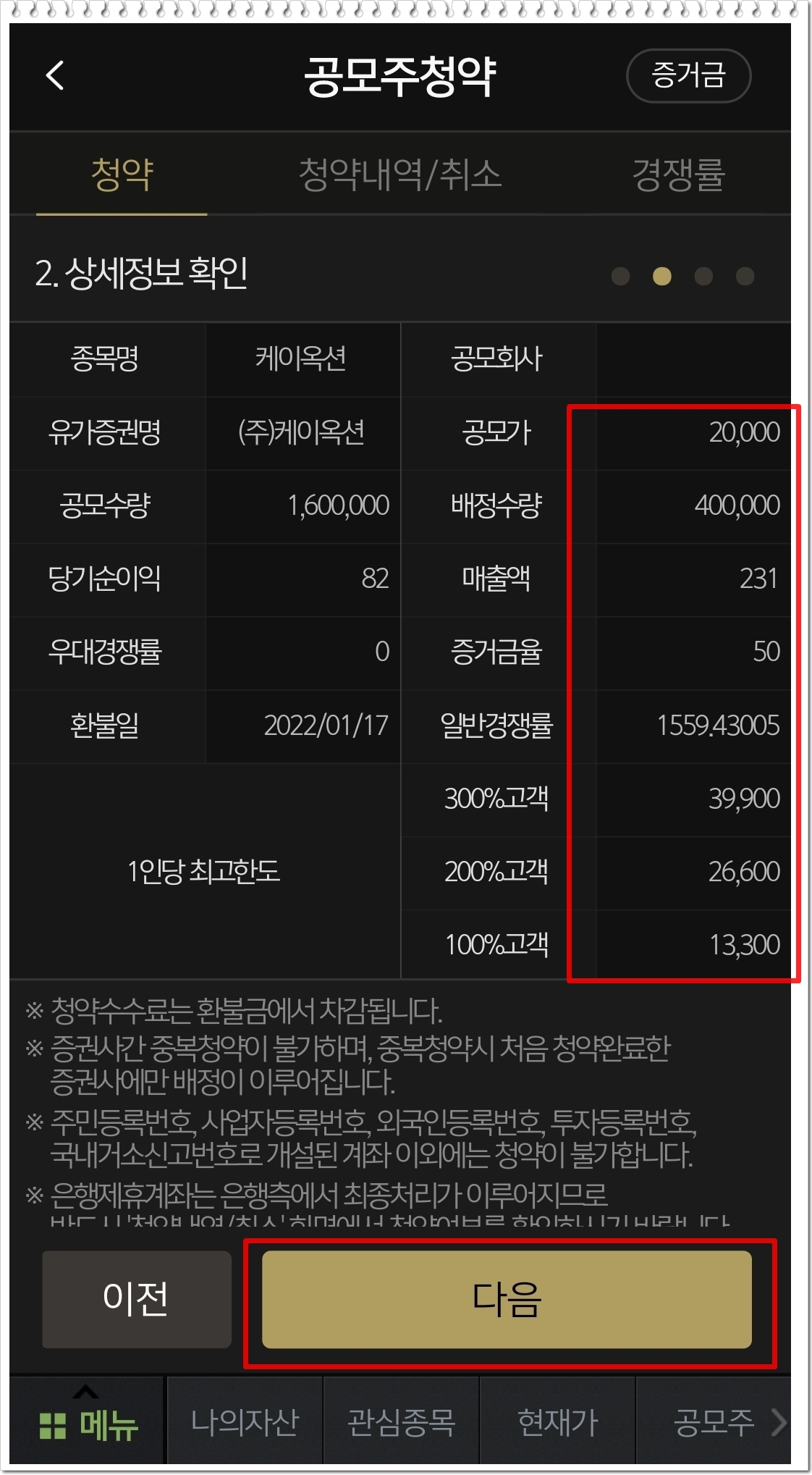 케이옥션의 개요와 신영증권 계좌개설에 관해서는 일전에 글들을 올렸습니다. 이제 2일차 청약을 완료하는 것만 남았습니다. 사실상 첫날에는 경쟁률이 정말 의미가 없는 경우가 많습니다. 그래서 2일차부터 살펴보는 것이 좋은데요.