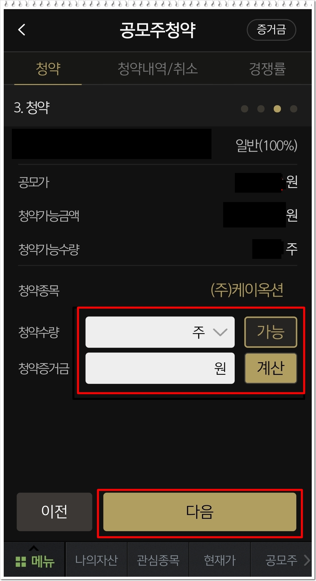 메뉴는 하단에 바로가기에 공모주가 있습니다. 공모주 선택> 청약선택 >상세개요 다음>원하는 수량 선택 > 타사이체, 환불 금액이체 선택> 청약하기를 하면 완료가 됩니다.
