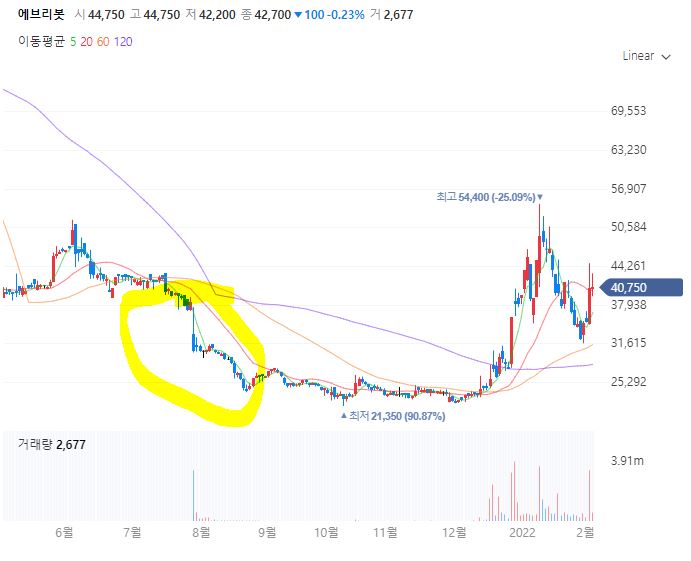 2021년 7월 코스닥에 이전상장한 에브리봇은 상장 후에 공모가 아래로 밑돌다가 6개월이 지나서 12월에 로봇테마로 다시 상승하여 공모가보다 수익률을 보여주었는데요. 장투로 기업의 미래를 보고 투자하시는 것이 아니라면 단기적으로는 변동성이 큰 공모주의 특징을 기억하시면 참고가 되실 것 같습니다.