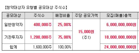공모가 : 15,000원 (증거금 50%)