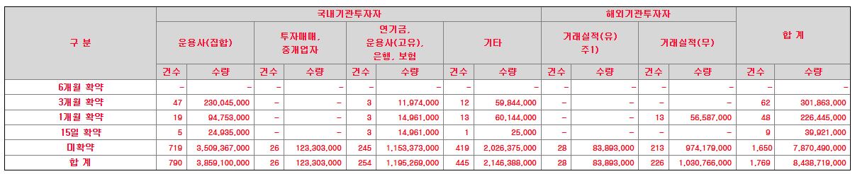 상장일 유통 가능 물량은 공모 물량이 대부분이긴합니다. 기존 주주는 4.84%입니다. 공모주에 비해 기존주주가 높지는 않은 상황인데요. 청약 물량 중 기관투자자의 의무보유확약에 따라 기관의 물량이 얼마나 나올지 결정됩니다.