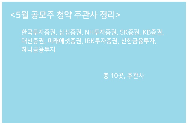 5월 공모주 청약 주관사 정리