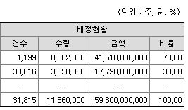 일반 공모자의 수량은 총 3,558,000건이었습니다. 일반 공모자의 주식 수 비율은 30%입니다. 기관은 70%를 차지하고 일반공모자는 30%의 물량을 받았습니다.