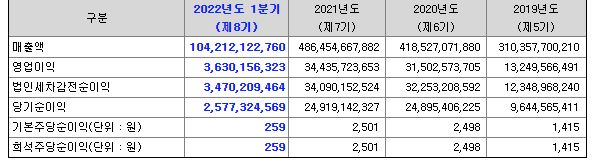 이로 꾸준한 매출액과 영업이익이 나오고 있는 상황입니다.
