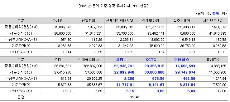 기업들 중에서는 선시세계인터네셔널, 현대백화점, 현대글로비스 등 상대적으로 가치 평가 대비 높은 기업들도 있습니다.