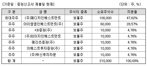 스팩은 인수합병을 위한 페이퍼 컴퍼니라서 그다지 기업 개요에 대해 알아볼 것은 없는데요. 최대주주가 누구인지 관심을 가져볼만합니다.