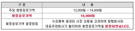 | 확정 공모가(희망 공모가 밴드) | 16,000원(12,000원~14,000원) |