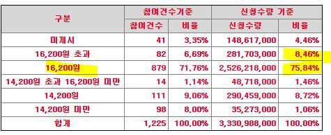 공모가의 신청 비율입니다. 상단이었던 16200원 이상을 선택한 비율이 월등히 높았습니다. 총 84.3%입니다. 보통 수요예측에 참여하면 밴드 상단을 선택하기도 하지만 인기가 없는 종목은 하단이 더 높기도 합니다.