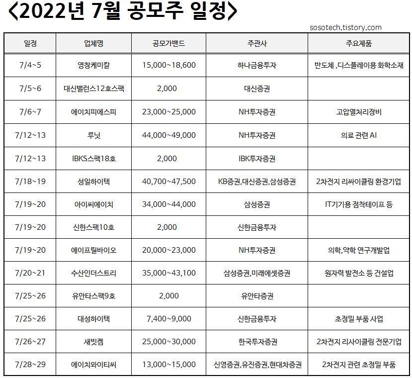 1. 2022년 7월 공모주 청약일정