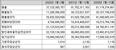 매출과 이익 모두 발생하고 있으며, 해외에서 발생하는 매출액도 많습니다. 판매조직은 아시아영업, 글로벌 영업팀으로 나뉘어 있으며 국내 고객사와 해외 고객사들에게 제품을 납품하고 있습니다.