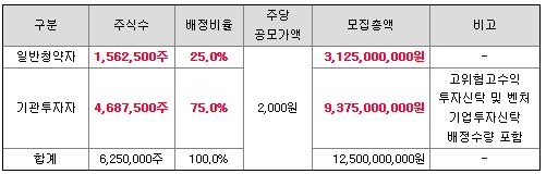 | 경쟁률 | 공모가 | 의무보유확약 신청비율 |