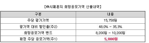 공모가는 주당 평가액에서 68%정도 할인율을 보여주게 되었는데요. 아직 매출이 없는 기업이라 가치가 명확하지 않습니다.