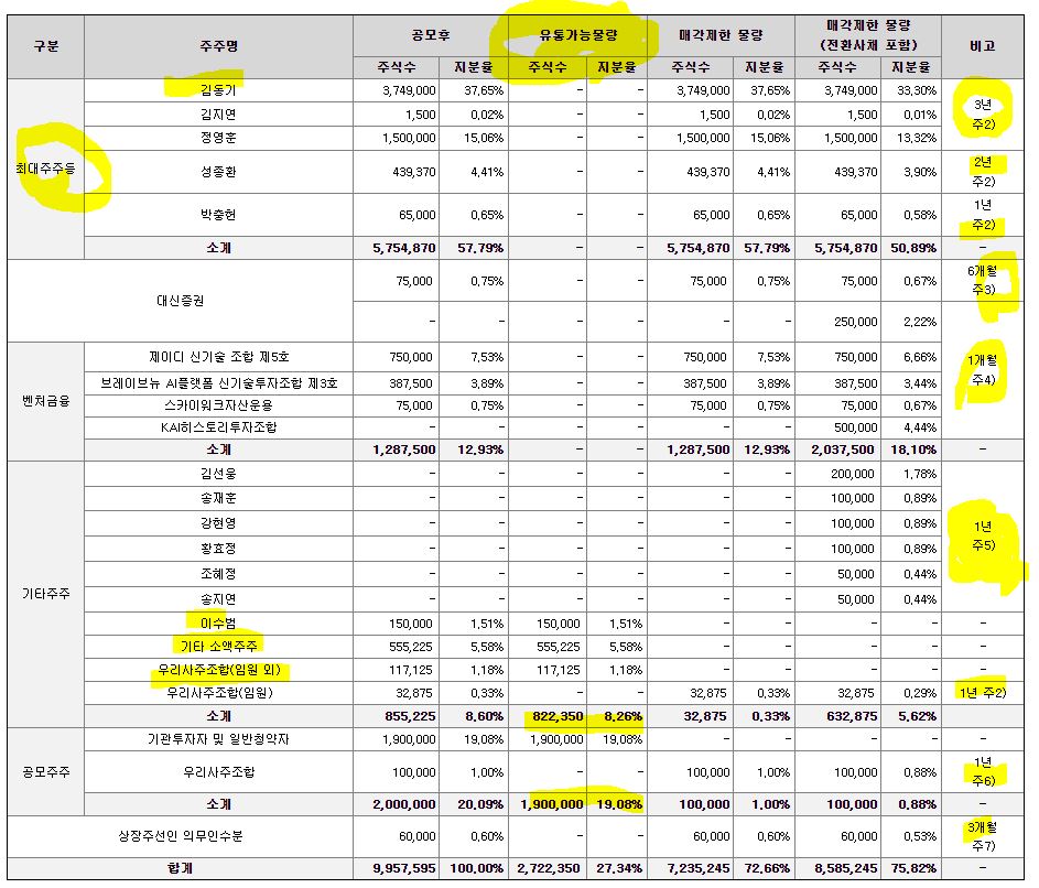 상장일 유통물량은 공모주주 19.08%와 기타 주주 8.26%가 있습니다. 공모주주의 비율이 더 높은 편이나 기존 주주의 물량도 다소 있습니다. 구주 매출은 따로 없습니다.