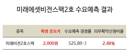1. 미래에셋비전스팩 2호 수요예측 결과