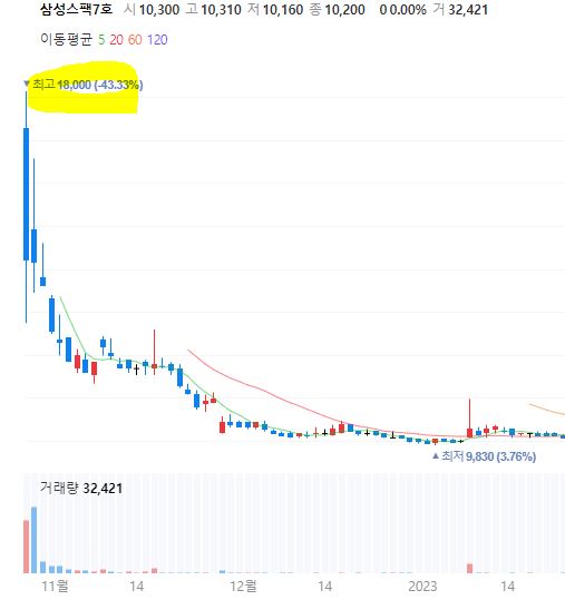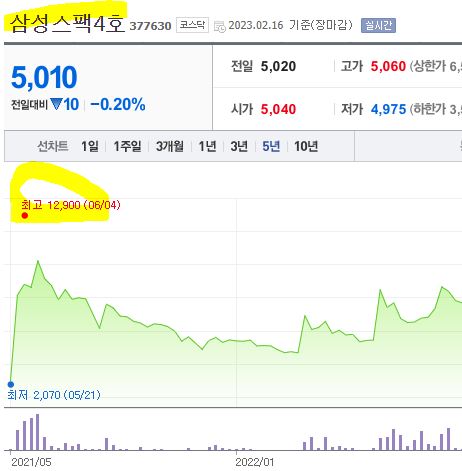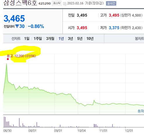 삼성스팩이 주목 받는 이유는 가끔씩 떠도는 소식인 삼성계열의 인수합병 때문이 아닐까 싶은데요. 특별히 어떤 이유인지는 모르겠으나 유독 삼성만 스팩이 상장후에 따상확률이 높고, 가끔씩 치솟을 때도 있었습니다. 삼성스팩 4호와 6호는 2,000원에 상장해 최고 12,000원대까지 기록했습니다. 대부분 상장 초기이기 때문에 매도 시점이 중요합니다.
