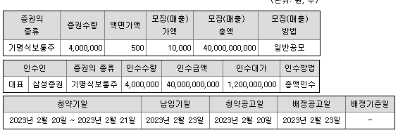 마지막으로 상장일정입니다. 2023년 2월 20일~21일, 청약이 진행되며 환불은 2월 23일입니다. 아직까지 상장일은 정해지지 않았습니다.