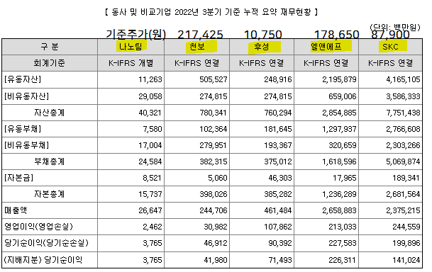 비교그룹으로 보면 다 짱짱합니다. 천보,후성, 엘앤에프,skc 전기차 시장이 지속해서 커져오고 있는 가운데 코로나 이후 주가가 무섭게 올랐던 기업들이기도 합니다. 공모가 산출에 쓰인 기준주가는 위쪽에 있습니다.