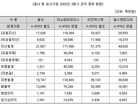 세 기업과 자람의 재무현황 2022년 비교입니다.