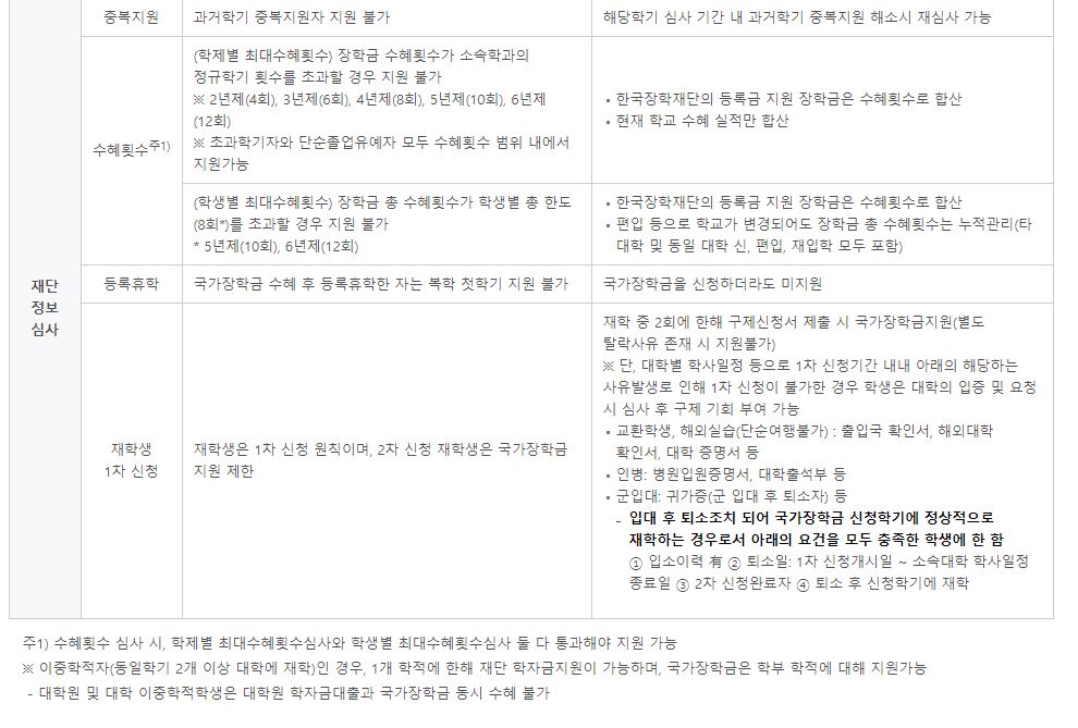 ※ 재학생은 국가장학금 1차 신청이 원칙(단, 재학 중 2회에 한해 2차 신청이 가능하며 구제신청서 제출 시 재심사 가능)